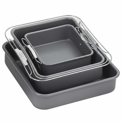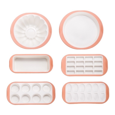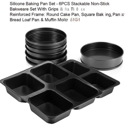 O nosso conjunto de silicone profissional inclui panela redonda, panela quadrada, panela de pão,e moldes de bolinhos - todos com agarraduras e moldes reforçados de metal para durabilidade e fácil manuseio.