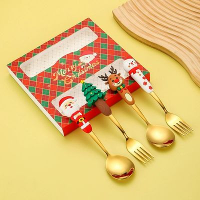 Conjunto personalizado de colheres e garfos de Natal de silicone ️ silicone de qualidade alimentar + aço inoxidável 304 ∙ talheres de desenhos animados de férias para crianças e presentes